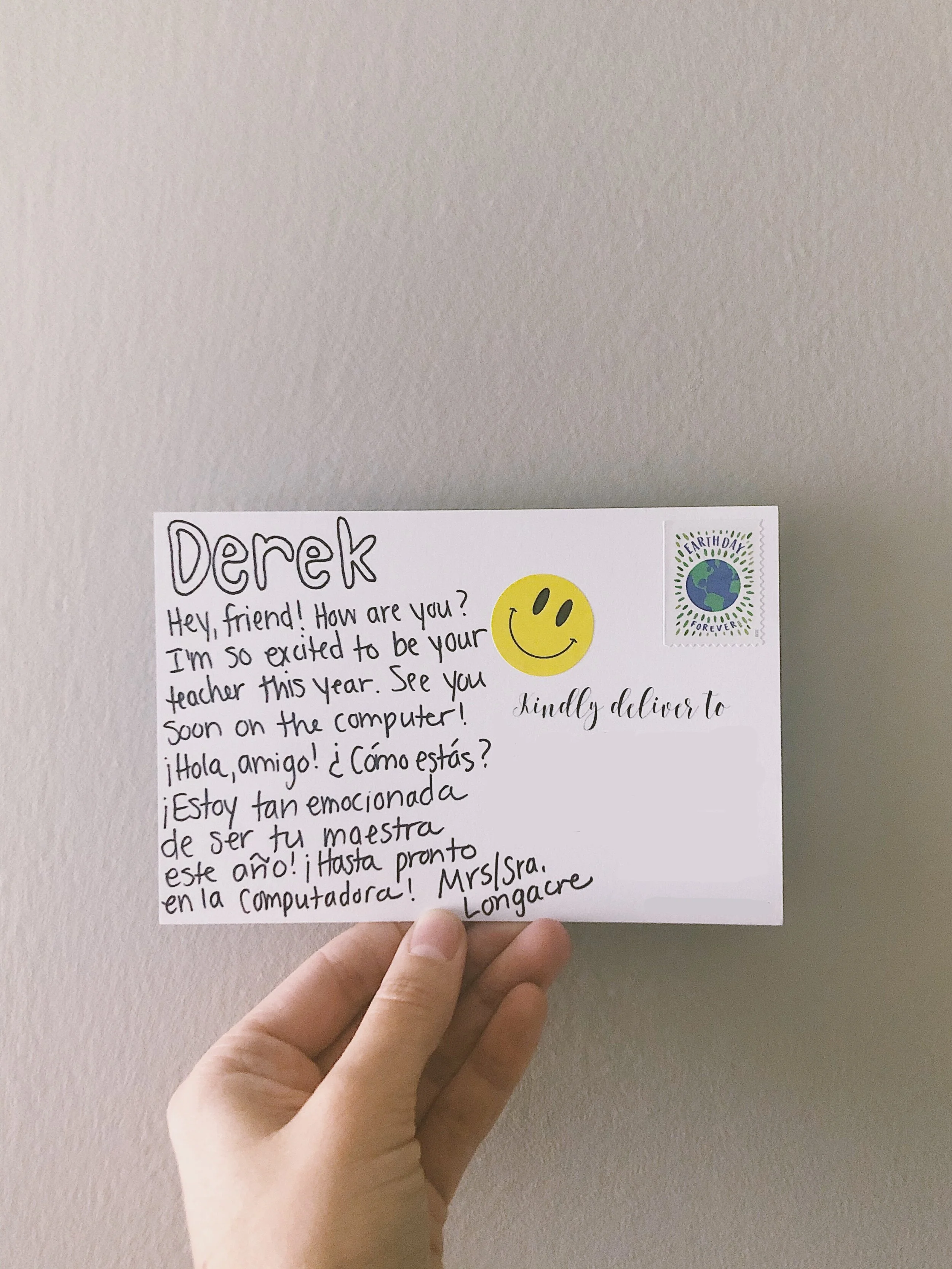 Because my school year is starting virtually, and we weren’t able to have our usual “meet the teacher” night, I felt like this small gesture was more important this school year than ever! Like many of us, my 18 future students have gone through a lot of change, stress, and uncertainty these past few months and I wanted to send them a quick “hello” to let them know I’ve been thinking about them and can’t wait to get to know them.